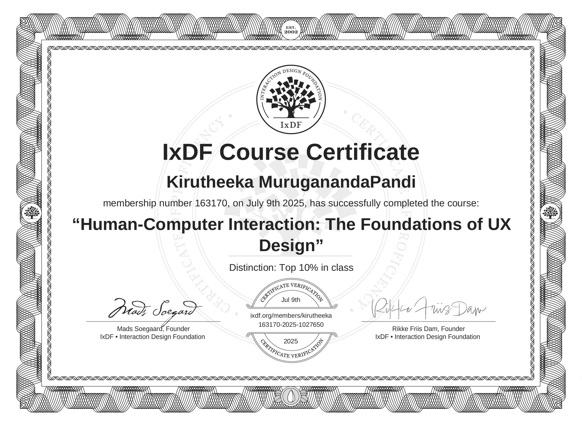 Complete an IxDF course with a score of at least 90% to be awarded this distinction.IxDF Top 10%