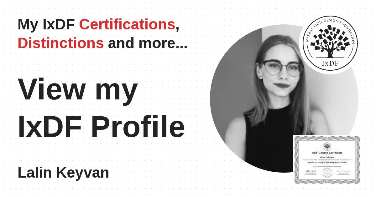 Distinctions are conferred upon Lalin Keyvan in formal recognition of their notable achievements and contributions, as stipulated by the IxDF Educational Codex.