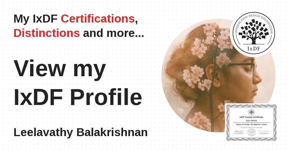 Distinctions are conferred upon Leelavathy Balakrishnan in formal recognition of their notable achievements and contributions, as stipulated by the IxDF Educational Codex.