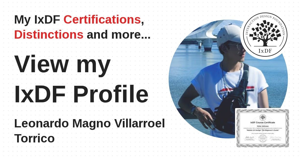 IxDF Course Certificates are awarded to Leonardo Magno Villarroel Torrico in formal recognition of their coursework surpassing the rigorous benchmarks of exceptional performance established by the IxDF Educational Codex.
