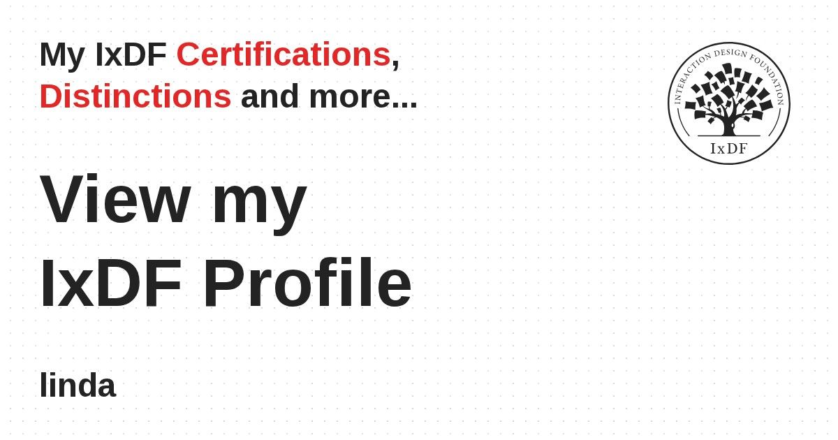 Distinctions are conferred upon linda in formal recognition of their notable achievements and contributions, as stipulated by the IxDF Educational Codex.