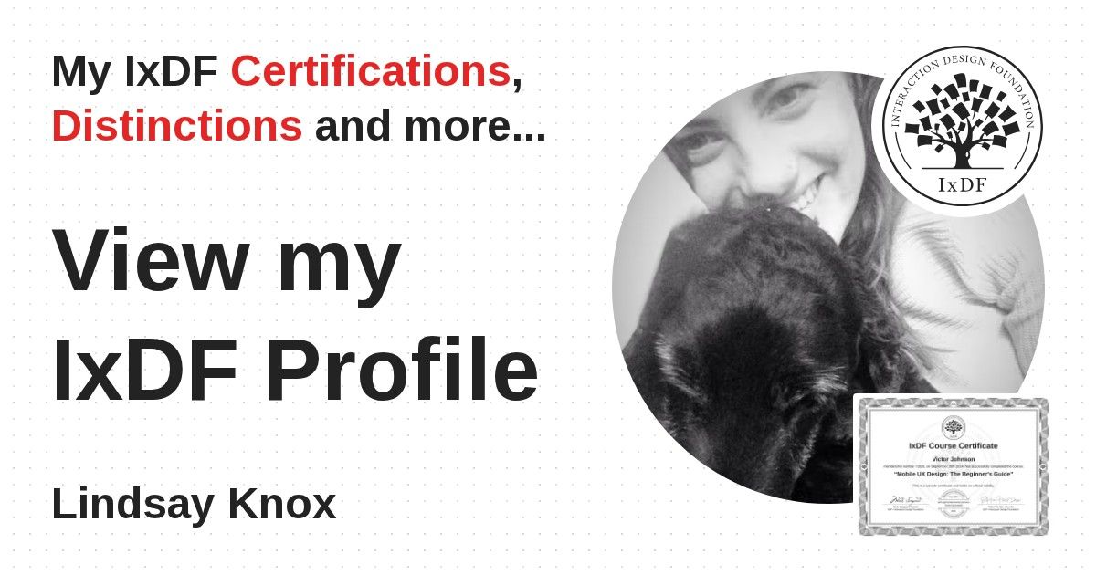 Distinctions are conferred upon Lindsay Knox in formal recognition of their notable achievements and contributions, as stipulated by the IxDF Educational Codex.