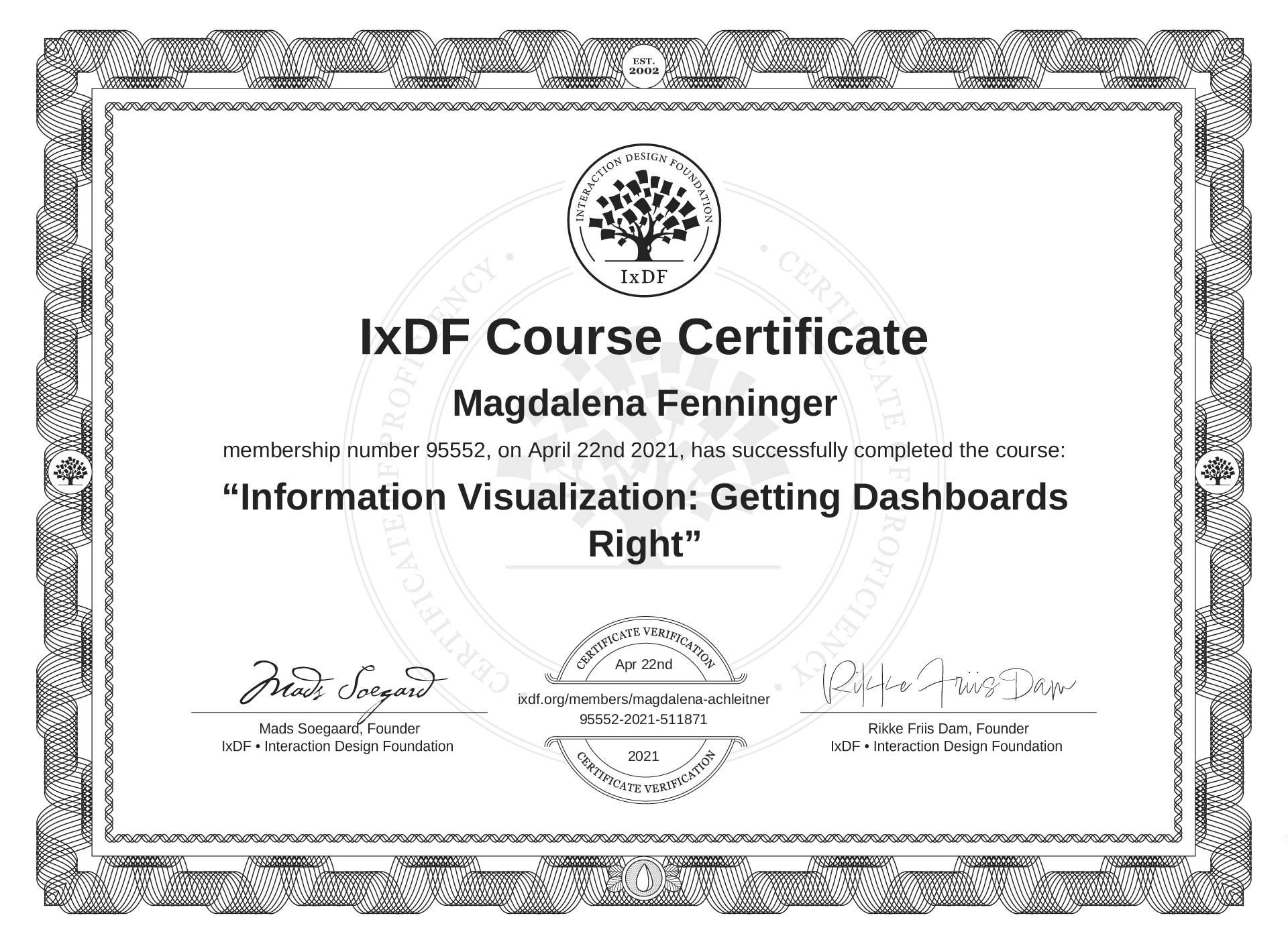 Magdalena Fenninger's Course Certificate: Information Visualization: Getting Dashboards Right