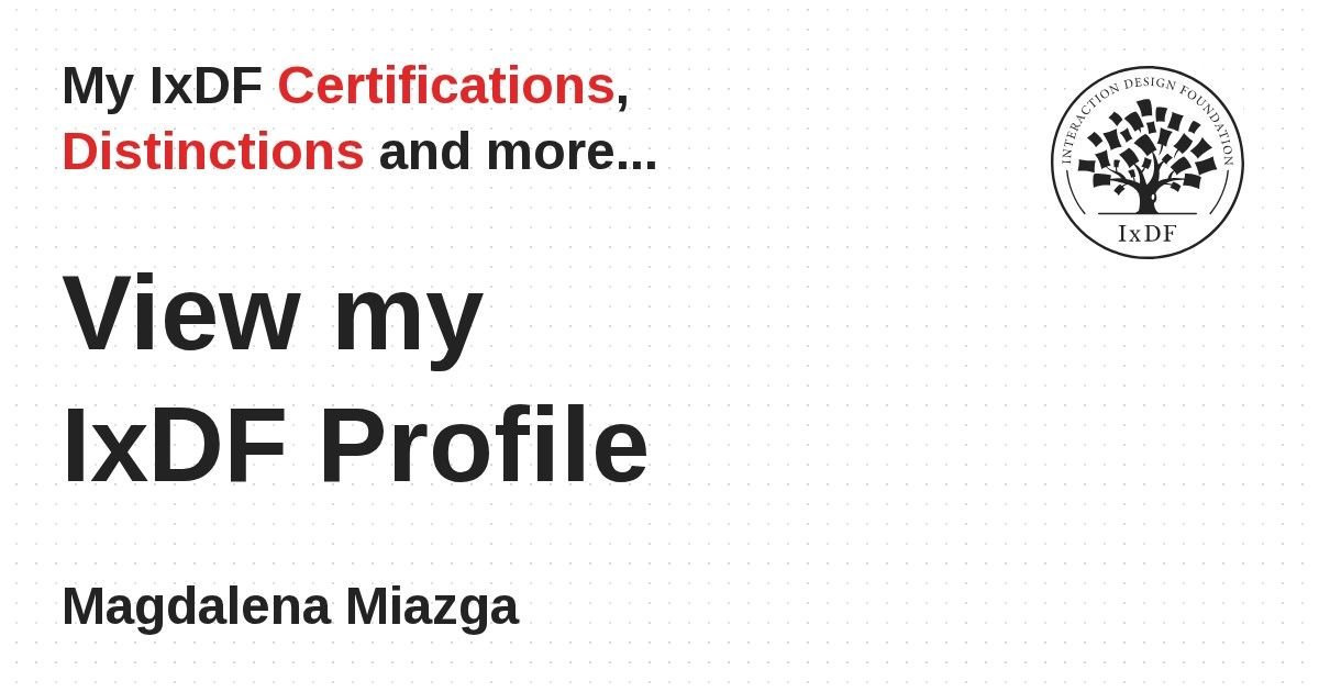 Distinctions are conferred upon Magdalena Miazga in formal recognition of their notable achievements and contributions, as stipulated by the IxDF Educational Codex.