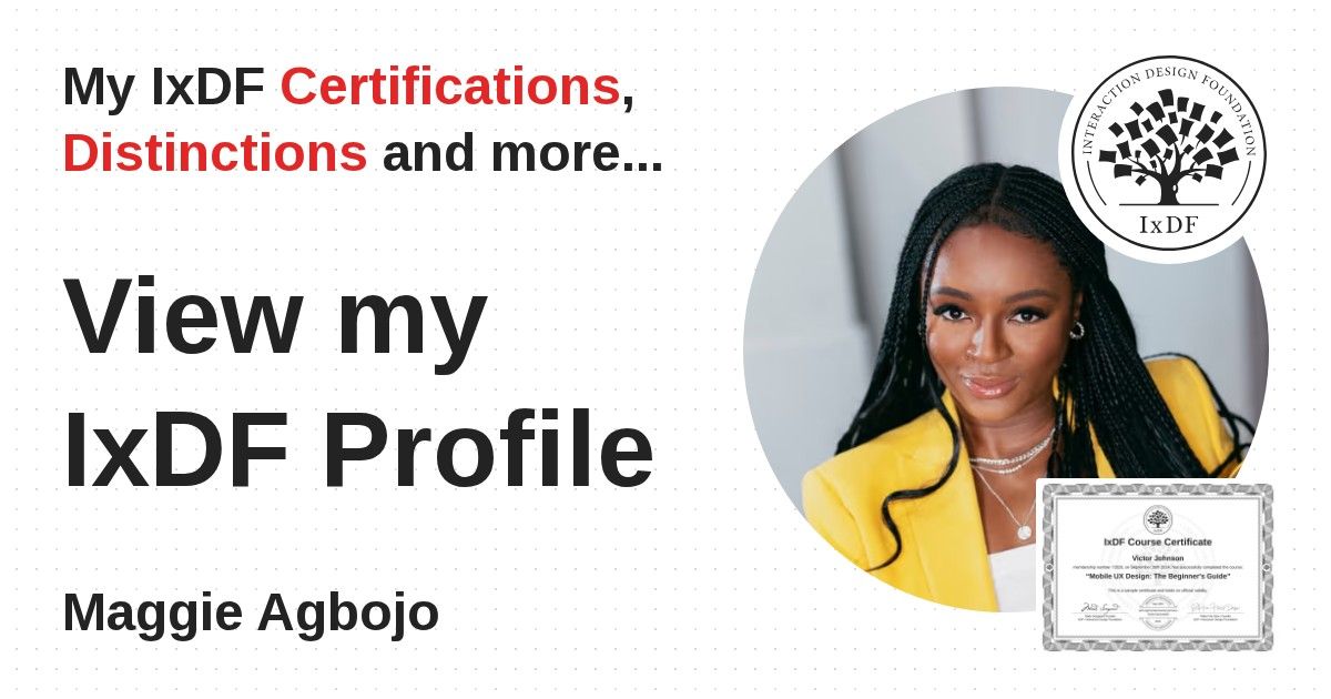 Distinctions are conferred upon Maggie Agbojo in formal recognition of their notable achievements and contributions, as stipulated by the IxDF Educational Codex.