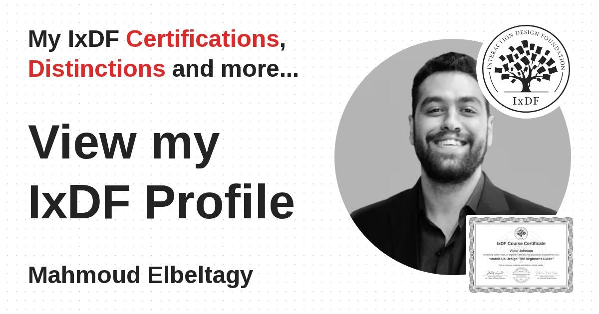 Distinctions are conferred upon Mahmoud Elbeltagy in formal recognition of their notable achievements and contributions, as stipulated by the IxDF Educational Codex.