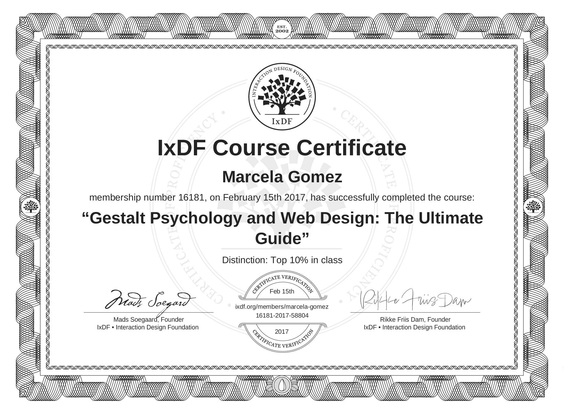 Marcela Gómez's Course Certificate: Gestalt Psychology and Web Design: The Ultimate Guide
