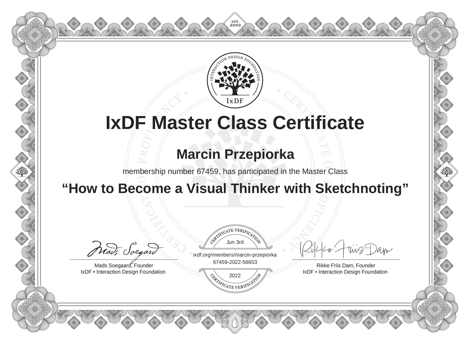 This IxDF Membership Certificate is issued to Marcin Przepiorka