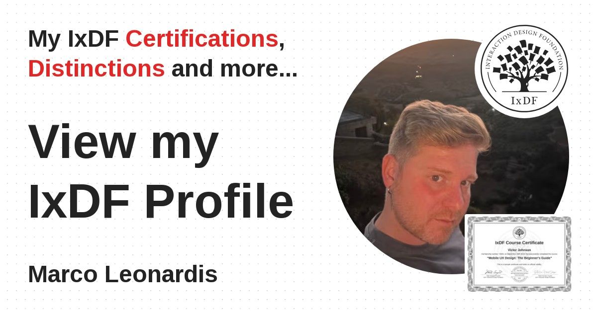 Distinctions are conferred upon Marco Leonardis in formal recognition of their notable achievements and contributions, as stipulated by the IxDF Educational Codex.
