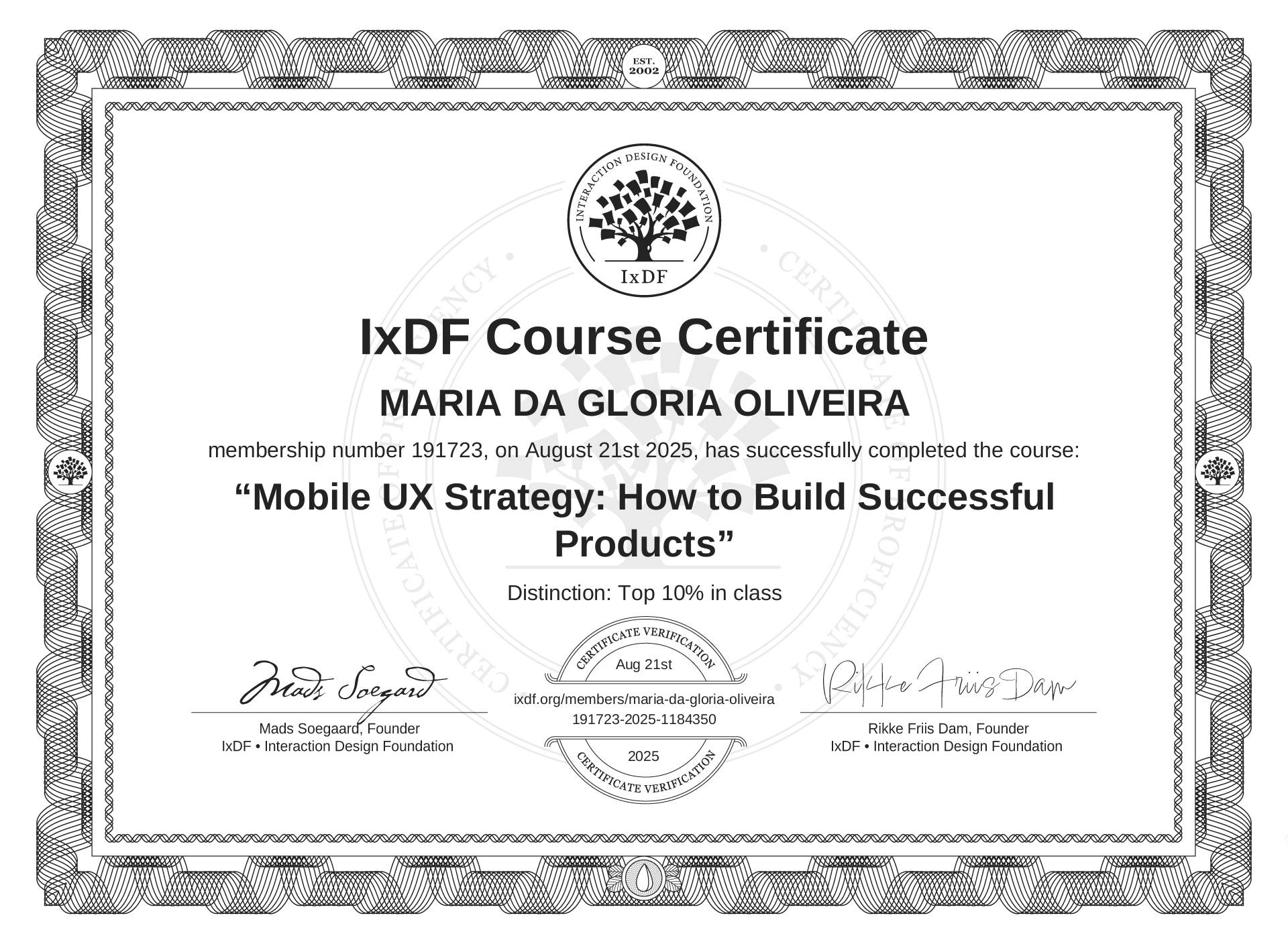 MARIA DA GLORIA OLIVEIRA's Course Certificate: Mobile UX Strategy: How to Build Successful Products