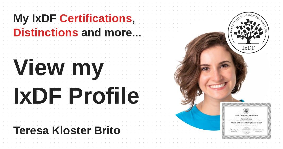 Distinctions are conferred upon Teresa Kloster Brito in formal recognition of their notable achievements and contributions, as stipulated by the IxDF Educational Codex.