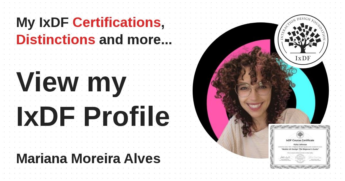 Distinctions are conferred upon Mariana Moreira Alves in formal recognition of their notable achievements and contributions, as stipulated by the IxDF Educational Codex.