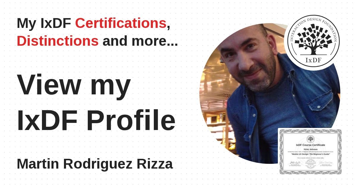 IxDF Course Certificates are awarded to Martin Rodriguez Rizza in formal recognition of their coursework surpassing the rigorous benchmarks of exceptional performance established by the IxDF Educational Codex.
