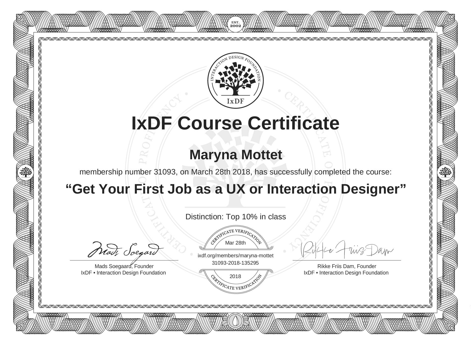 Maryna Mottet's Course Certificate: Get Your First Job as a UX or Interaction Designer