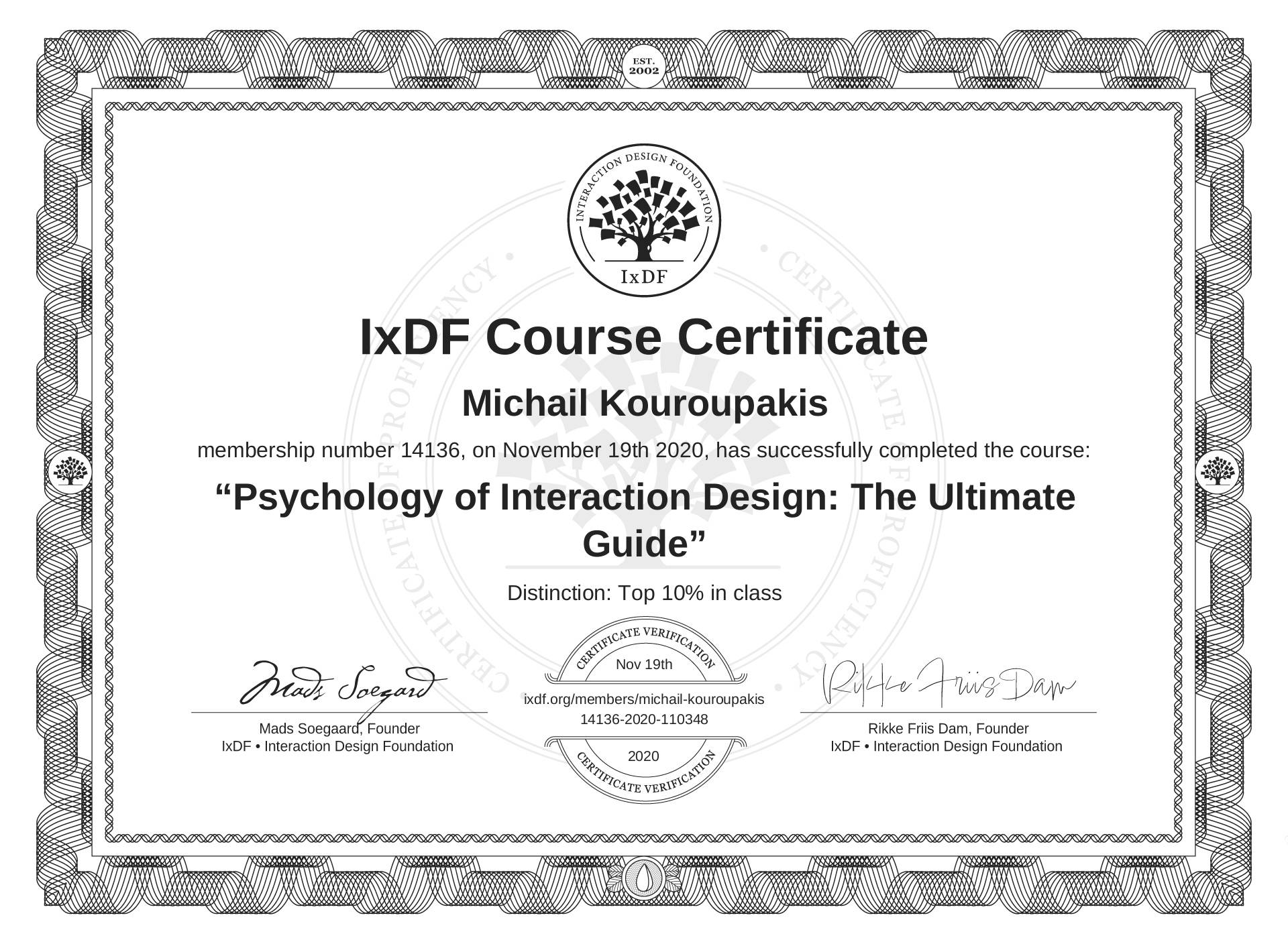 Michail Kouroupakis's Course Certificate: Psychology of Interaction Design: The Ultimate Guide