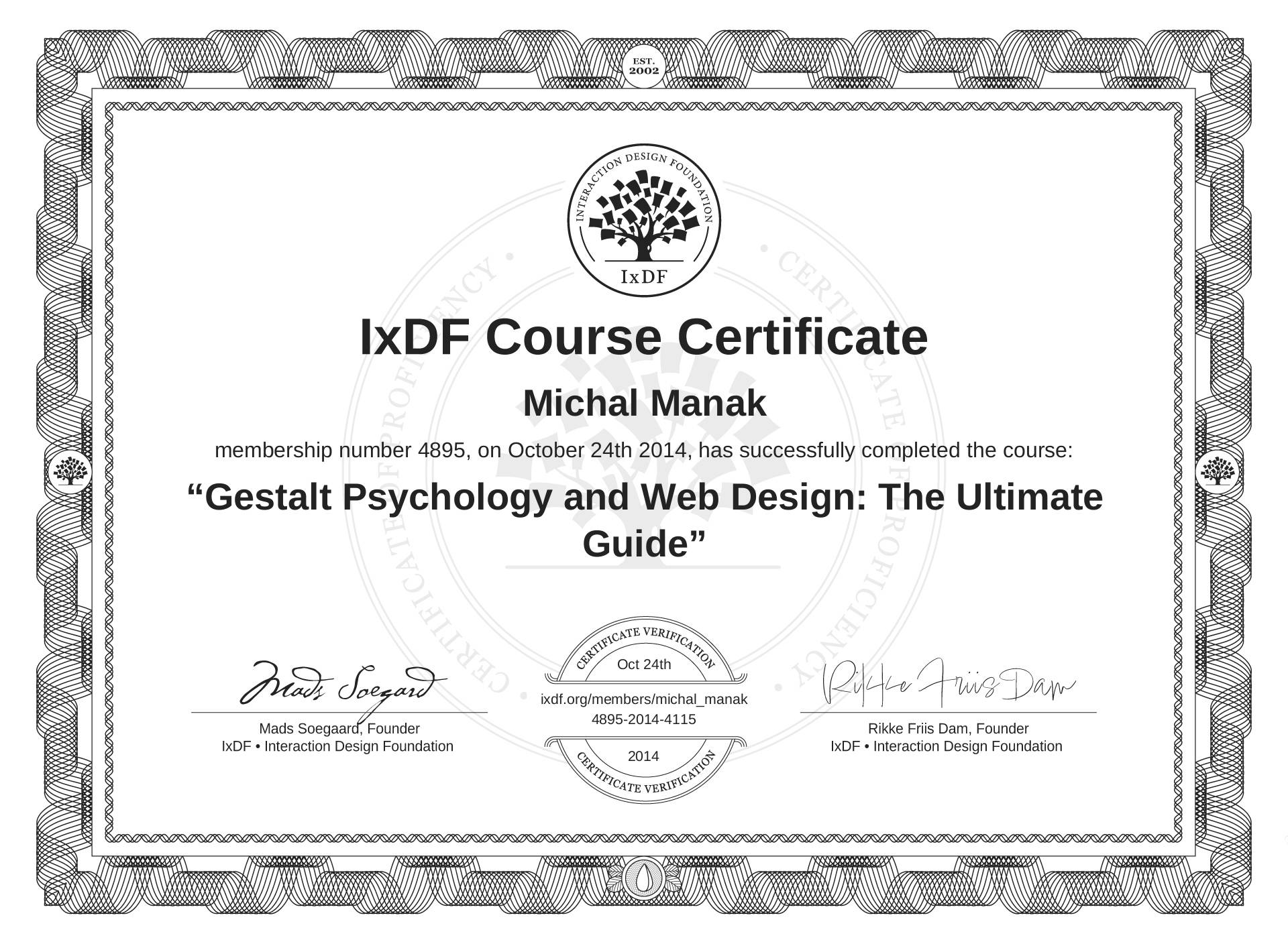 Michal Manak's Course Certificate: Gestalt Psychology and Web Design: The Ultimate Guide