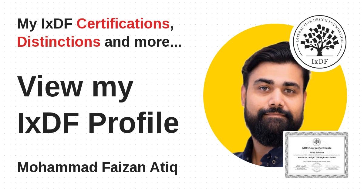 IxDF Course Certificates are awarded to Mohammad Faizan Atiq in formal recognition of their coursework surpassing the rigorous benchmarks of exceptional performance established by the IxDF Educational Codex.
