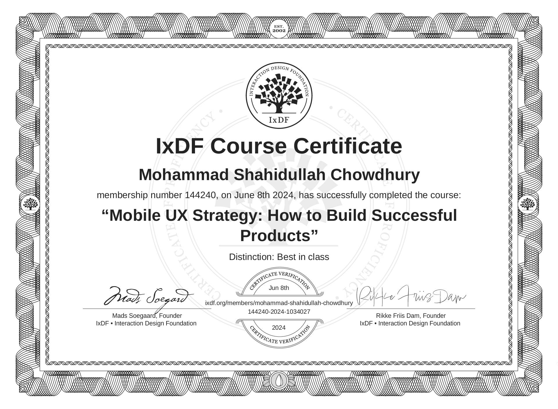 Mohammad Shahidullah Chowdhury's Course Certificate: Mobile UX Strategy: How to Build Successful Products
