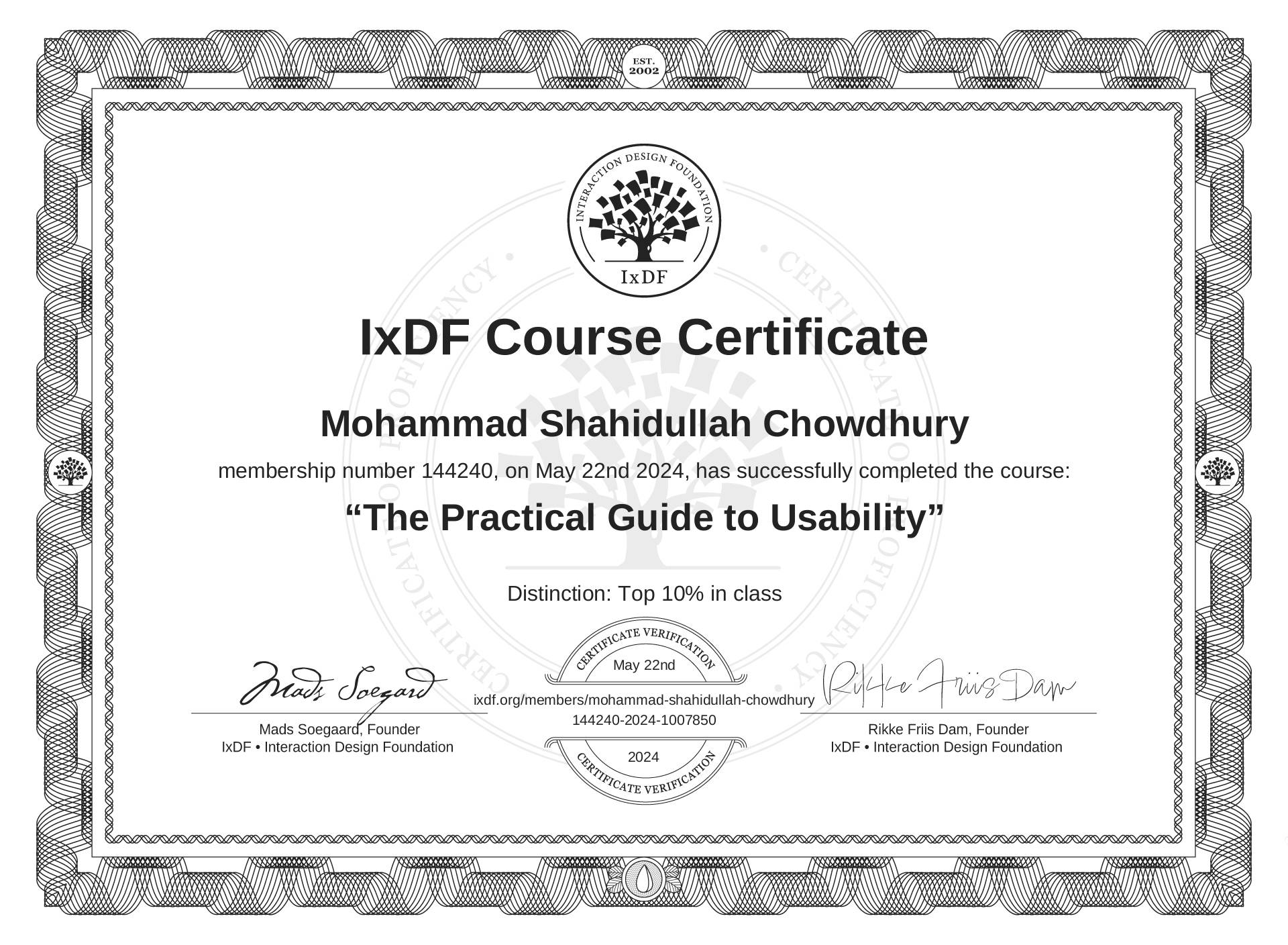 Mohammad Shahidullah Chowdhury's Course Certificate: The Practical Guide to Usability