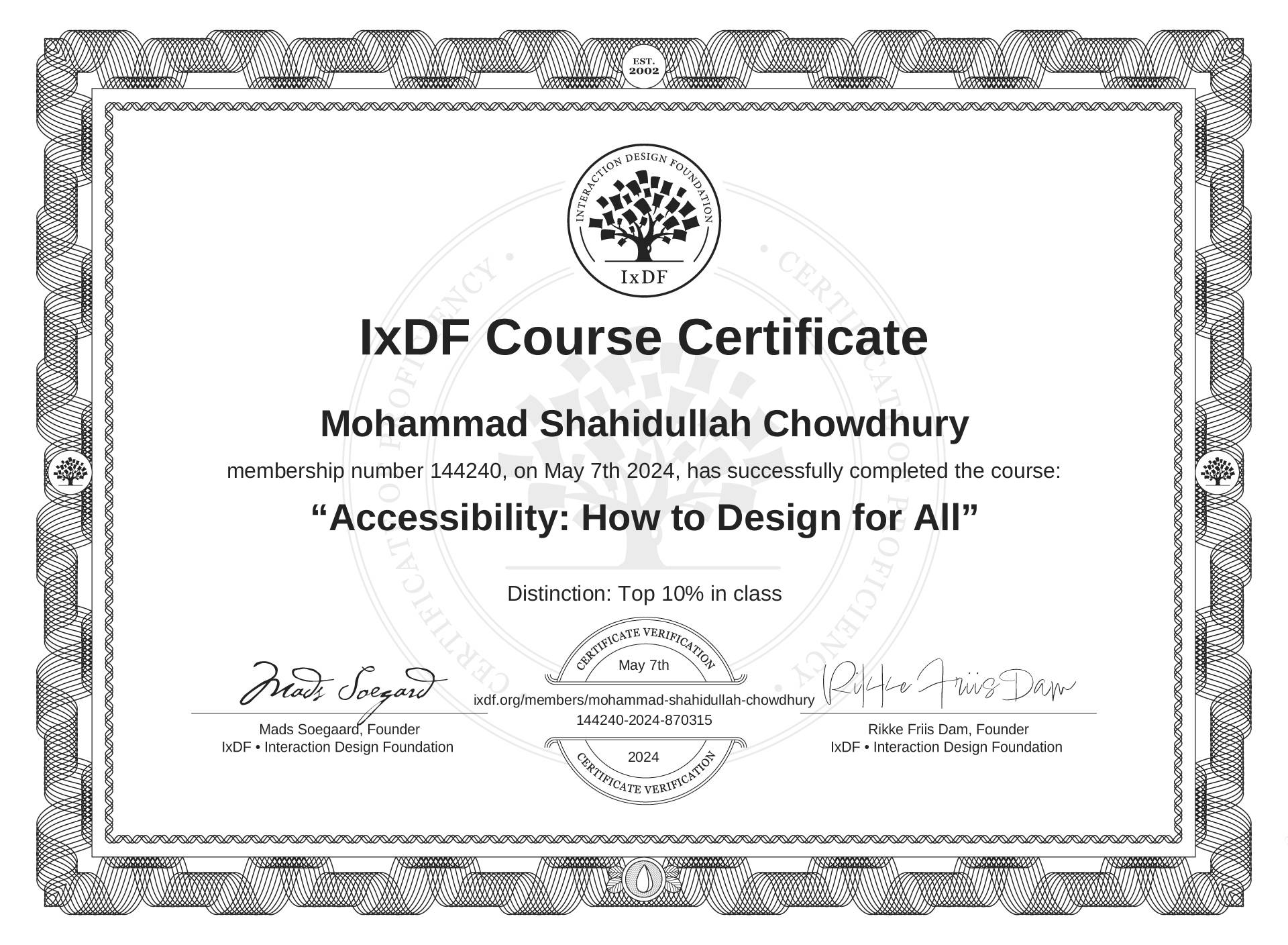 Mohammad Shahidullah Chowdhury's Course Certificate: Accessibility: How to Design for All