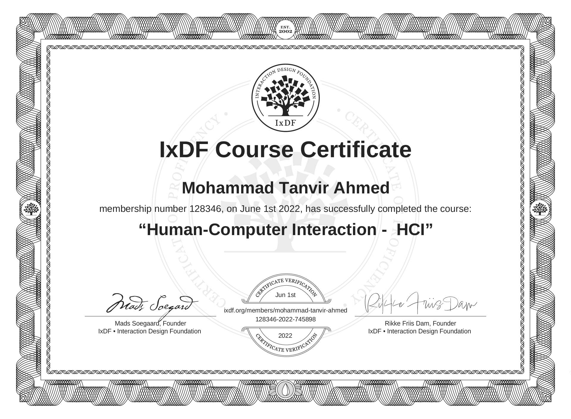 Mohammad Tanvir Ahmed's Course Certificate: Human-Computer Interaction - HCI