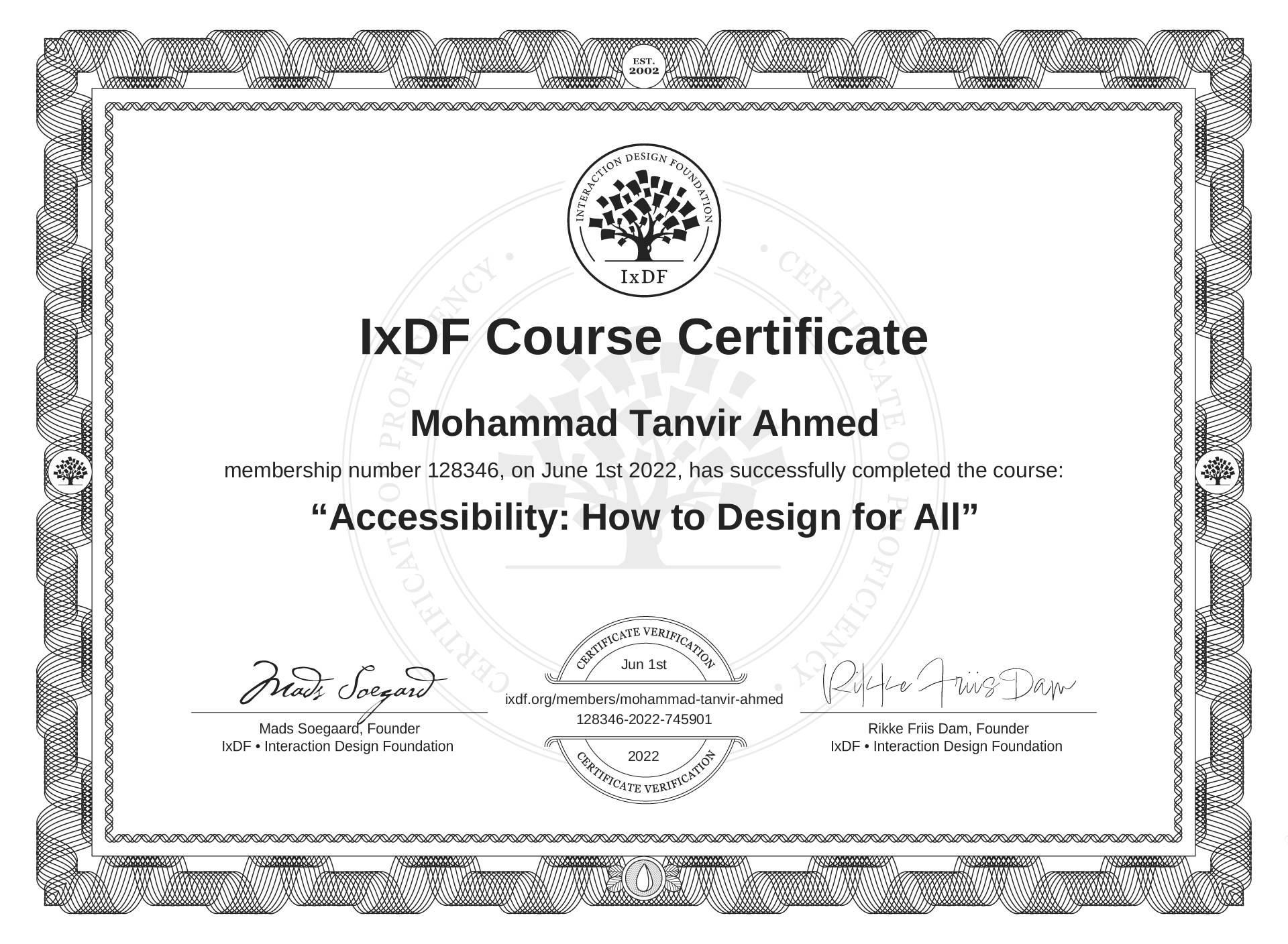 Mohammad Tanvir Ahmed's Course Certificate: Accessibility: How to Design for All
