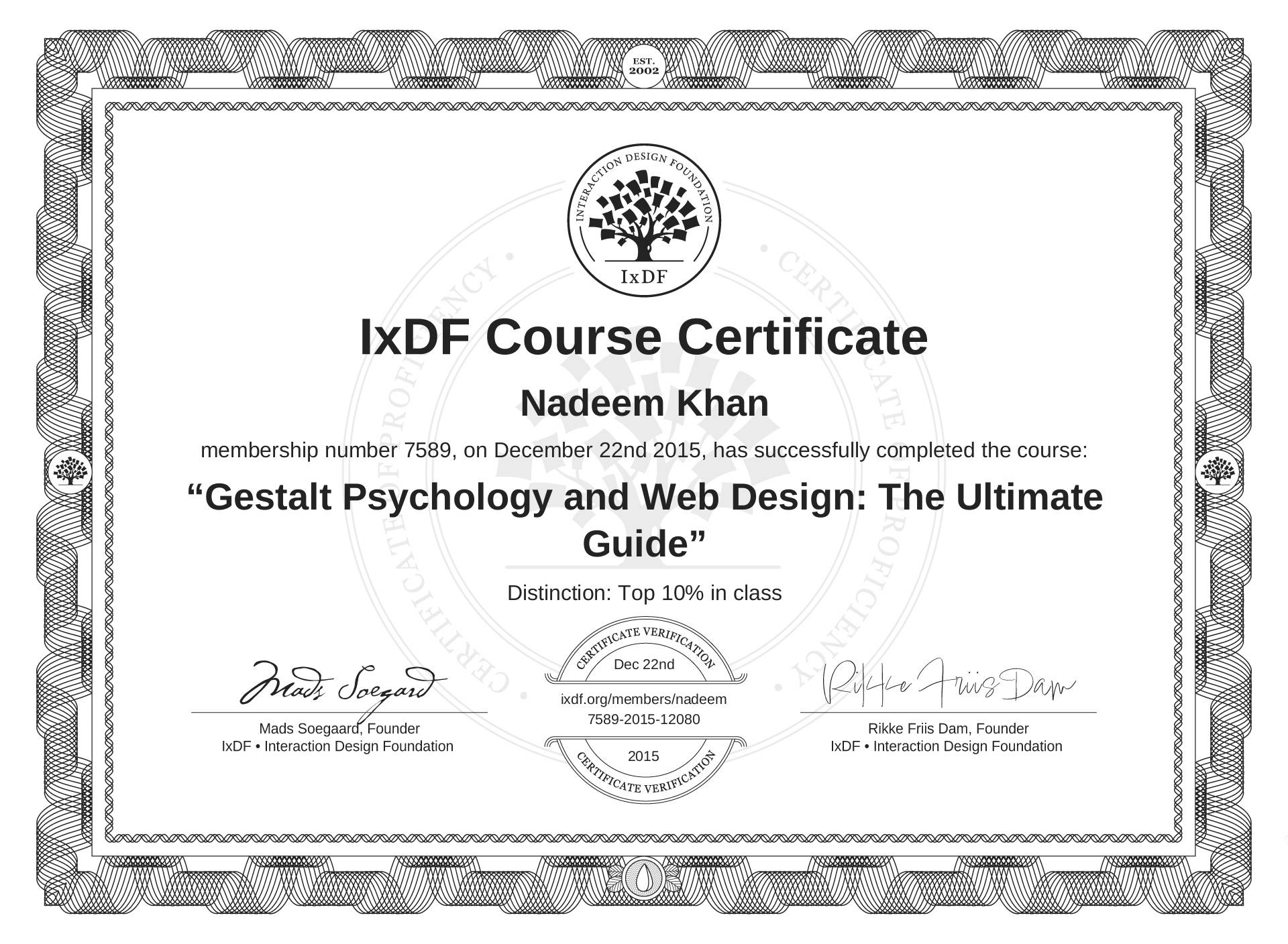Nadeem Khan's Course Certificate: Gestalt Psychology and Web Design: The Ultimate Guide