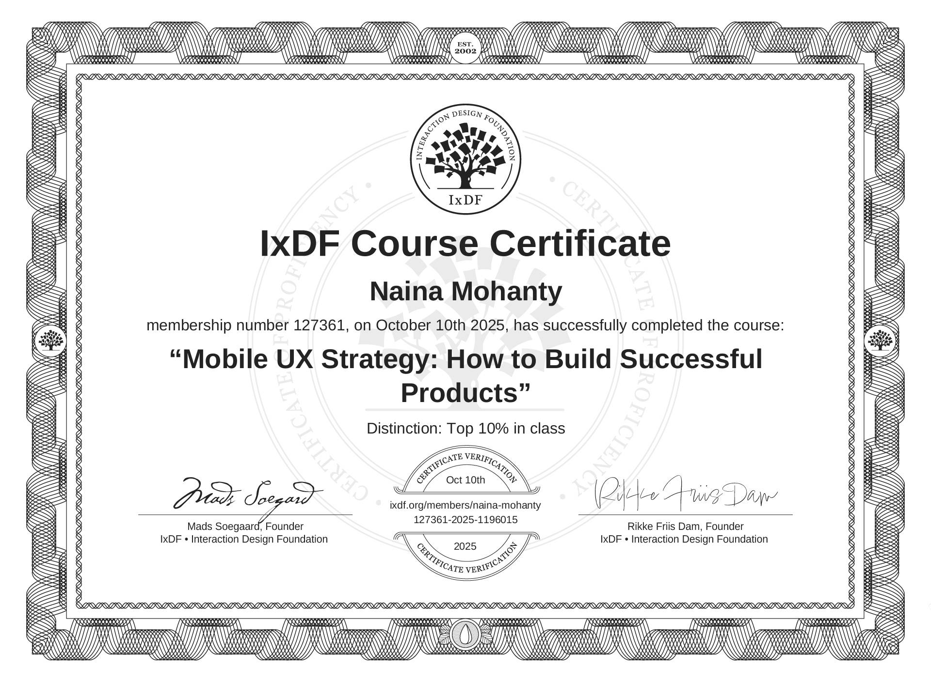 Complete an IxDF course with a score of at least 90% to be awarded this distinction.IxDF Top 10%