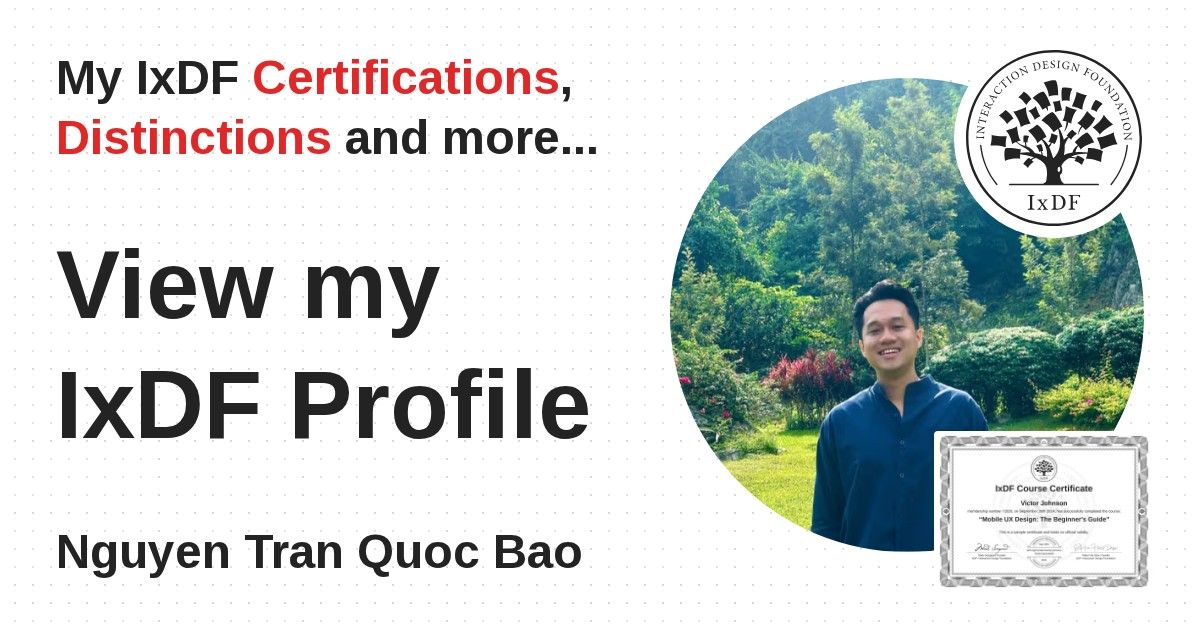 Distinctions are conferred upon Nguyen Tran Quoc Bao in formal recognition of their notable achievements and contributions, as stipulated by the IxDF Educational Codex.