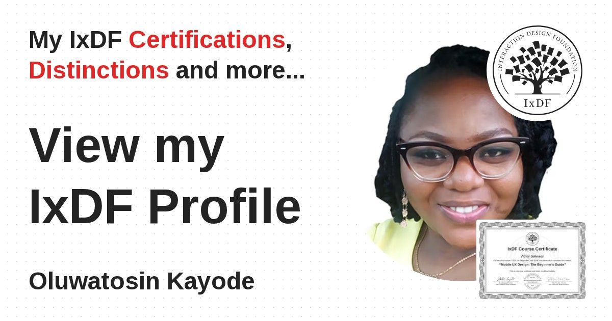 Distinctions are conferred upon Oluwatosin Kayode in formal recognition of their notable achievements and contributions, as stipulated by the IxDF Educational Codex.