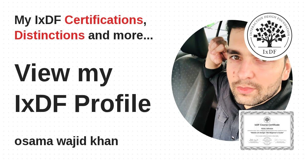 IxDF Course Certificates are awarded to osama wajid khan in formal recognition of their coursework surpassing the rigorous benchmarks of exceptional performance established by the IxDF Educational Codex.