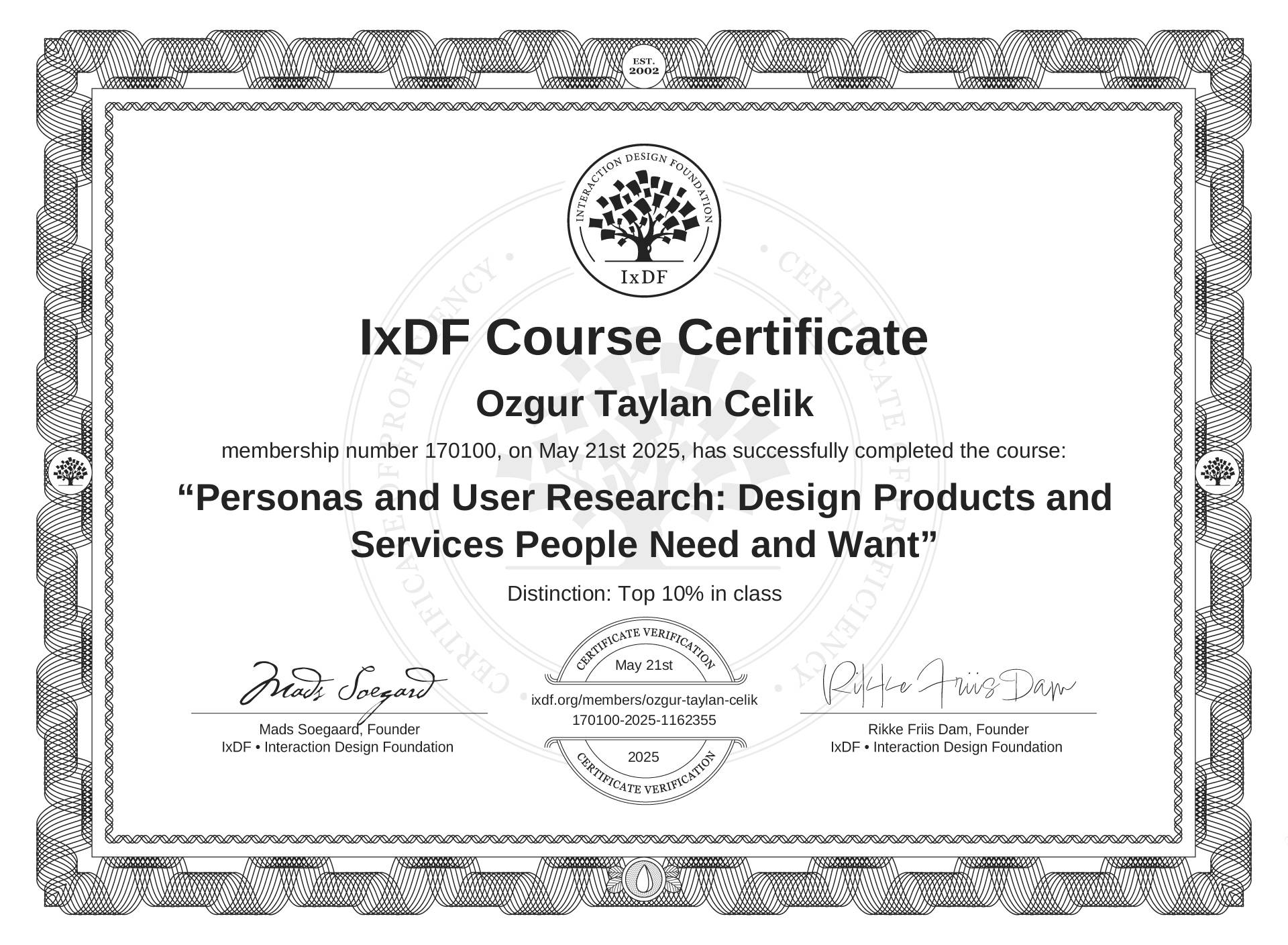 This IxDF Membership Certificate is issued to Özgür Taylan Çelik