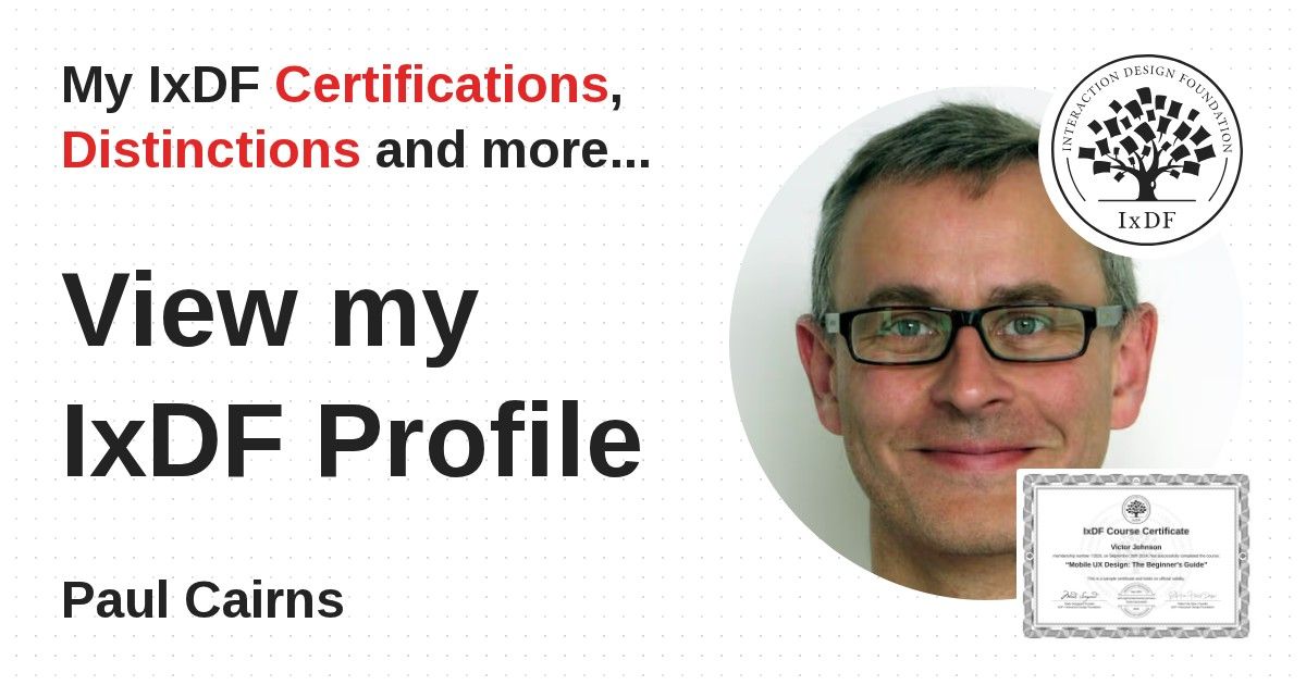 Distinctions are conferred upon Paul Cairns in formal recognition of their notable achievements and contributions, as stipulated by the IxDF Educational Codex.