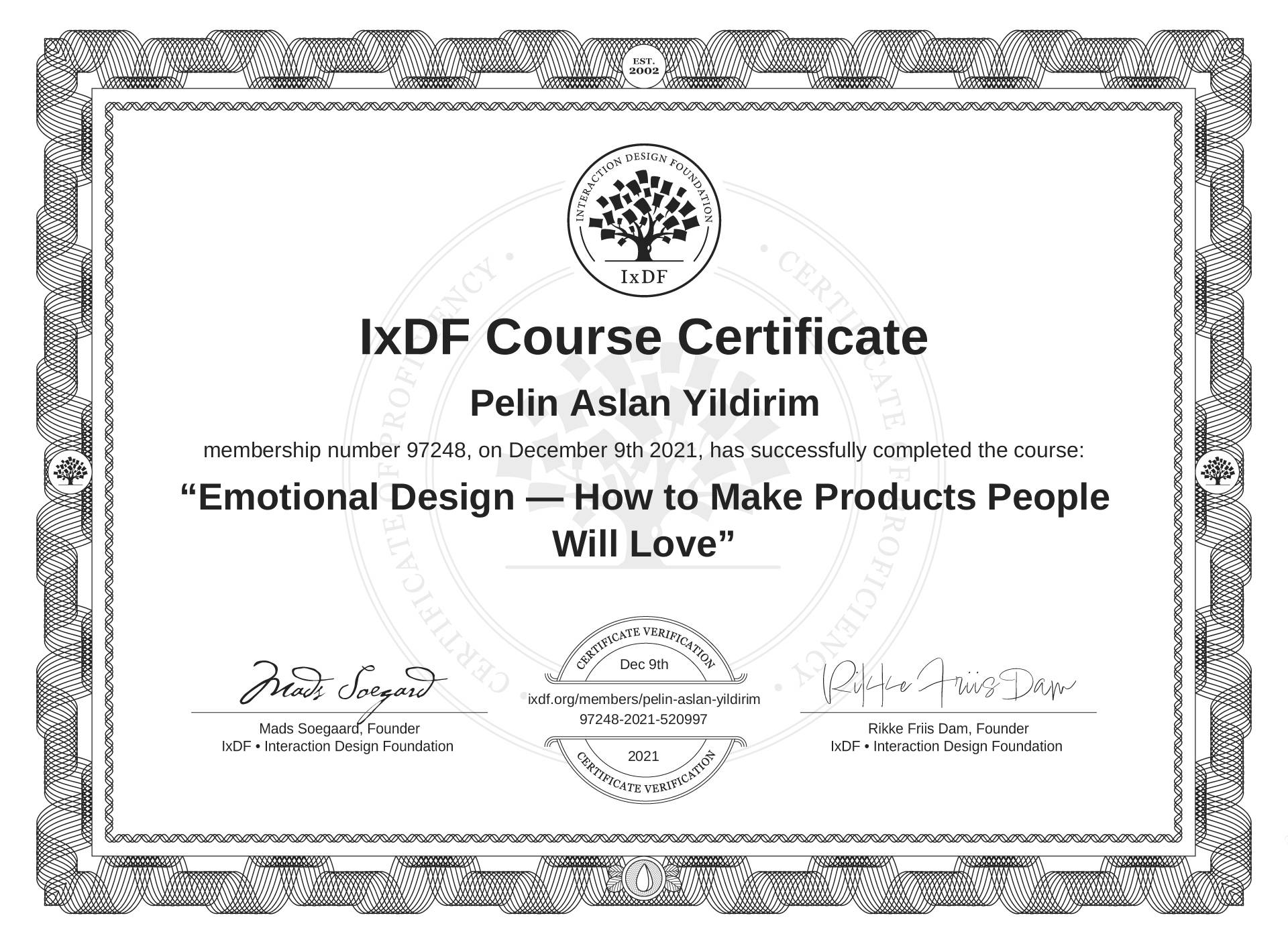Pelin Aslan Yıldırım's Course Certificate: Emotional Design — How to Make Products People Will Love