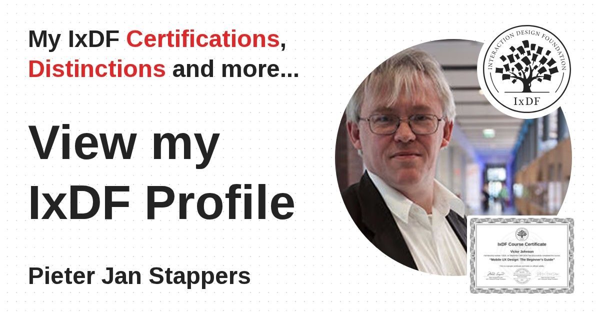 Distinctions are conferred upon Pieter Jan Stappers in formal recognition of their notable achievements and contributions, as stipulated by the IxDF Educational Codex.