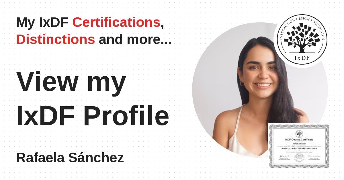Distinctions are conferred upon Rafaela Sánchez in formal recognition of their notable achievements and contributions, as stipulated by the IxDF Educational Codex.