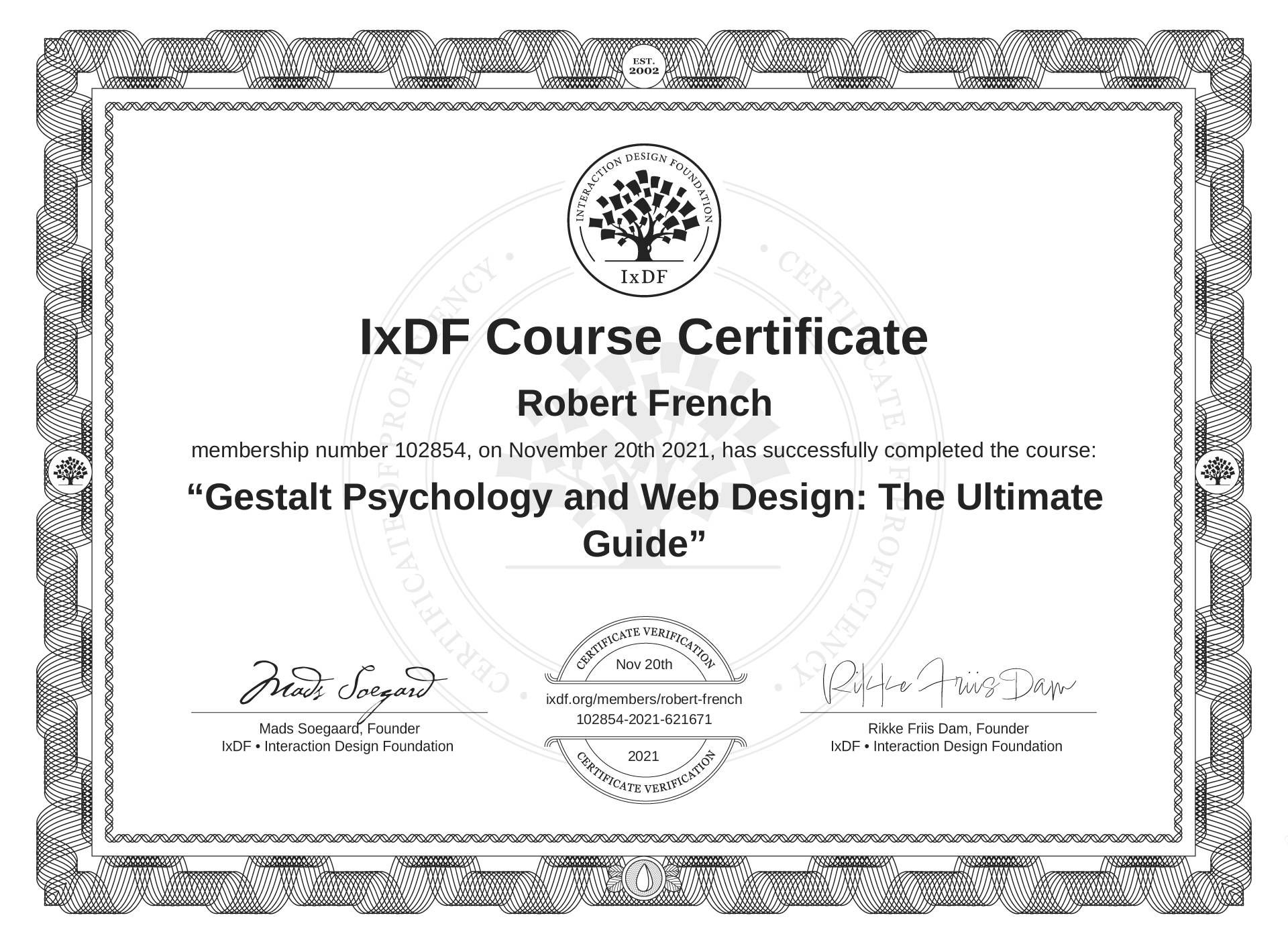 Robert French's Course Certificate: Gestalt Psychology and Web Design: The Ultimate Guide