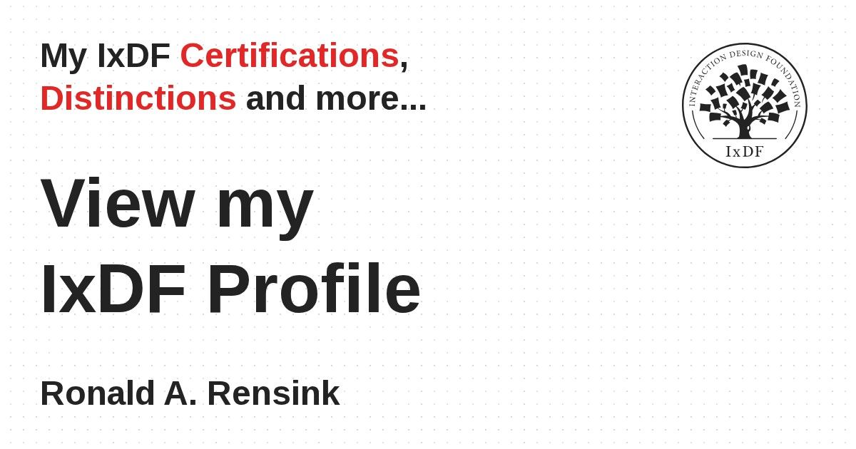 This IxDF Membership Certificate is issued to Ronald A. Rensink in formal recognition of their membership of the IxDF, global leader in design education.