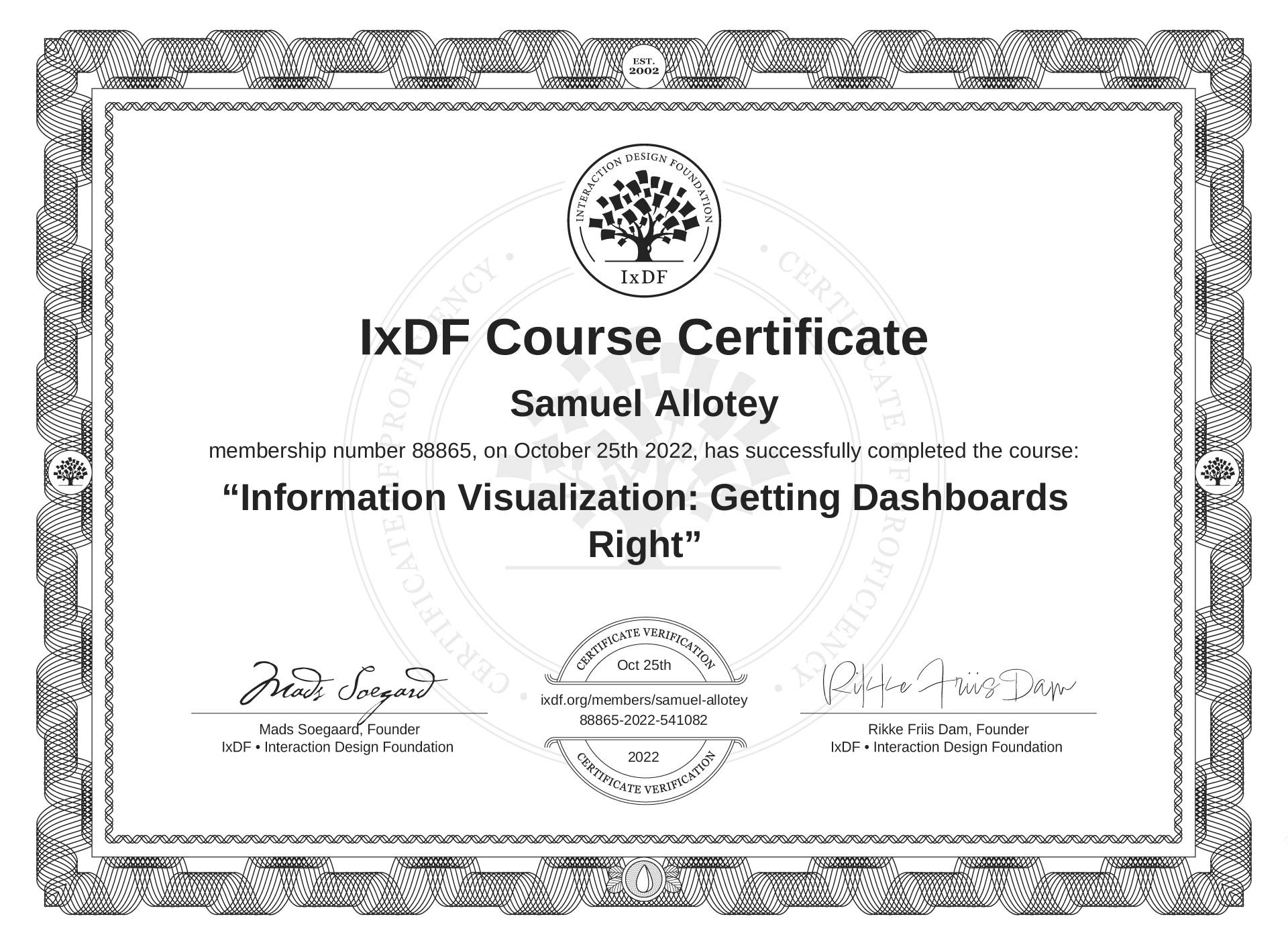 Samuel Allotey's Course Certificate: Information Visualization: Getting Dashboards Right