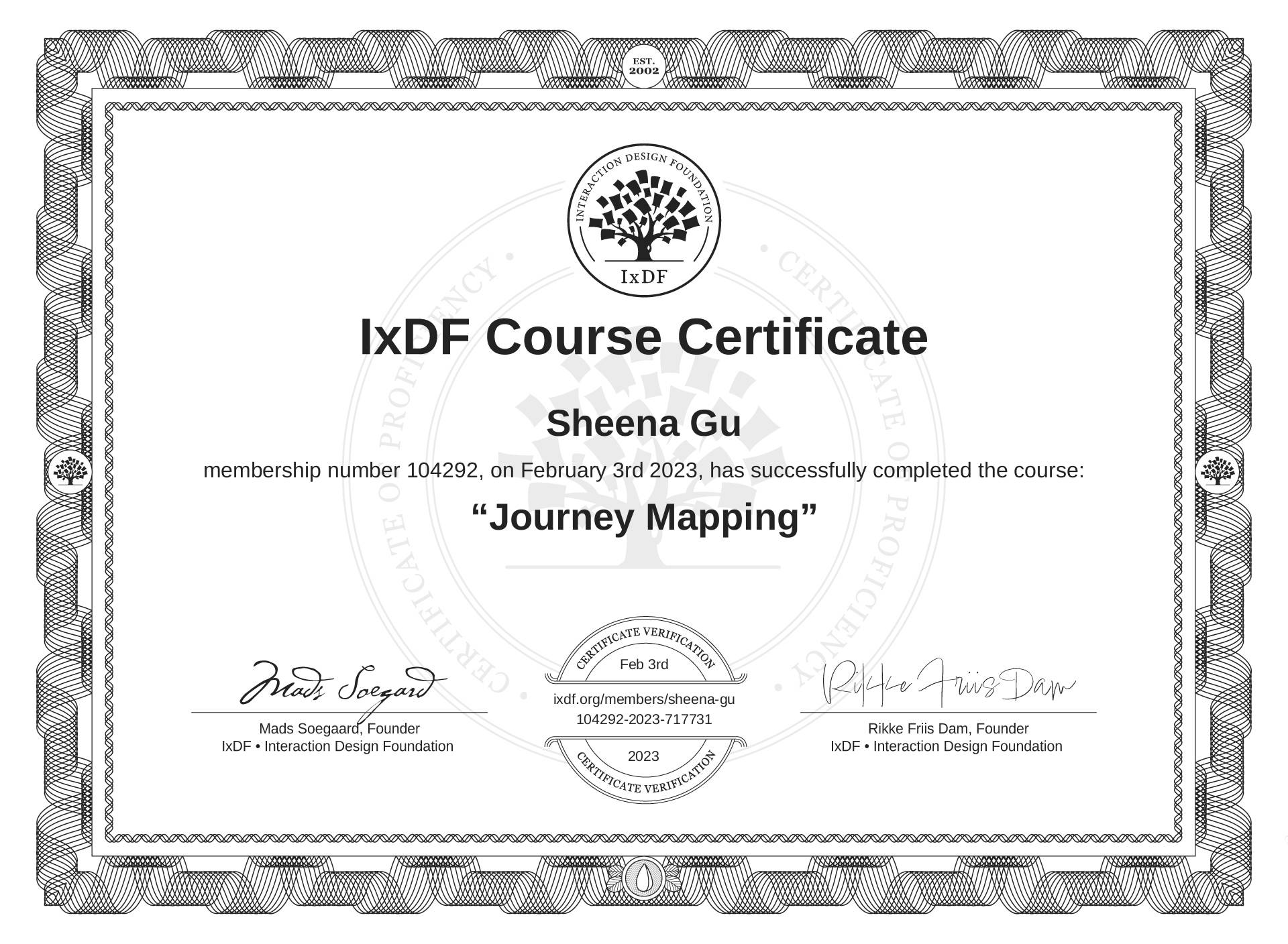 IxDF Course Certificates are awarded to Sheena Gu in formal recognition of their coursework surpassing the rigorous benchmarks of exceptional performance established by the IxDF Educational Codex.