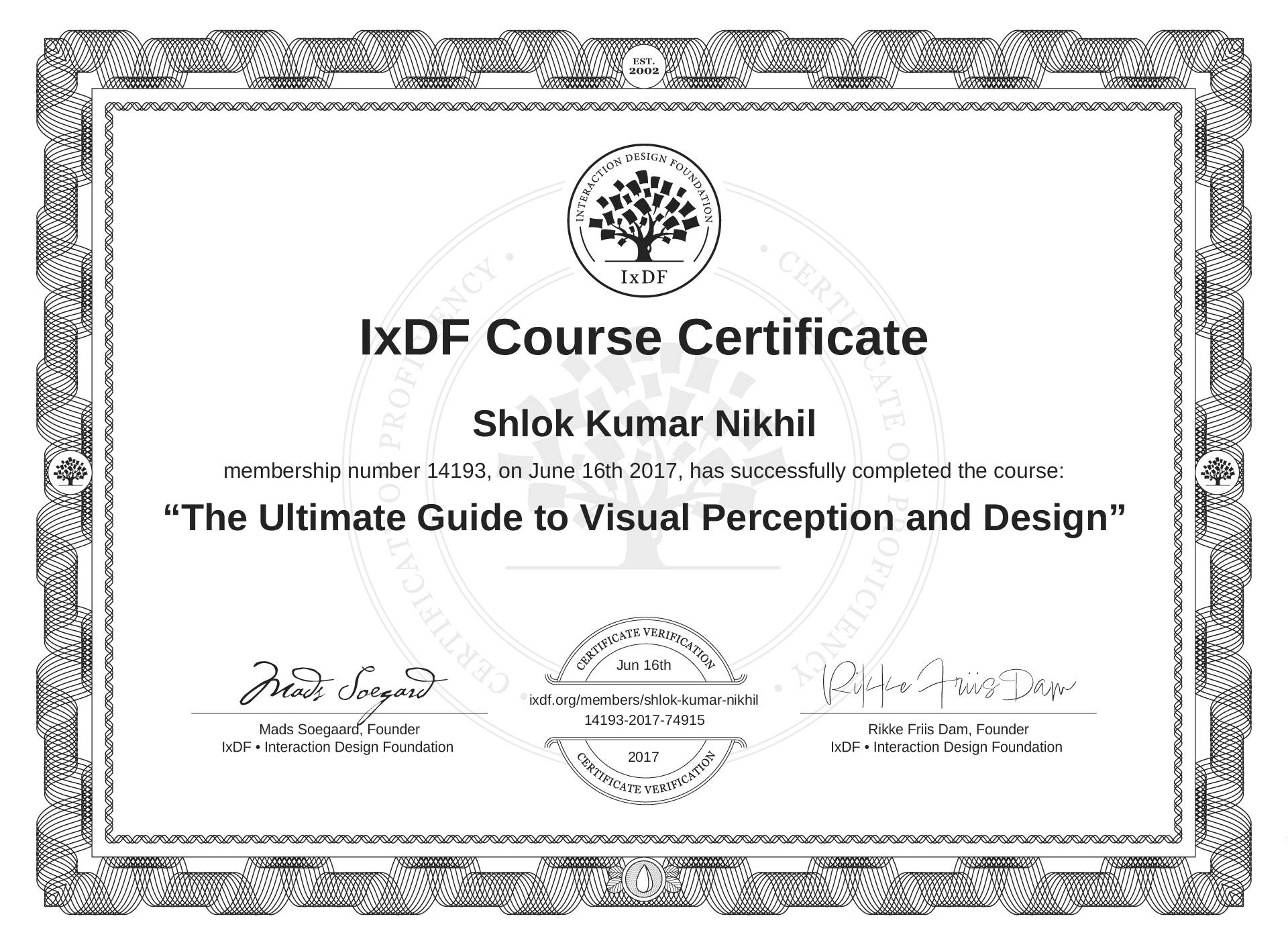Shlok Kumar Nikhil's Course Certificate: The Ultimate Guide to Visual Perception and Design
