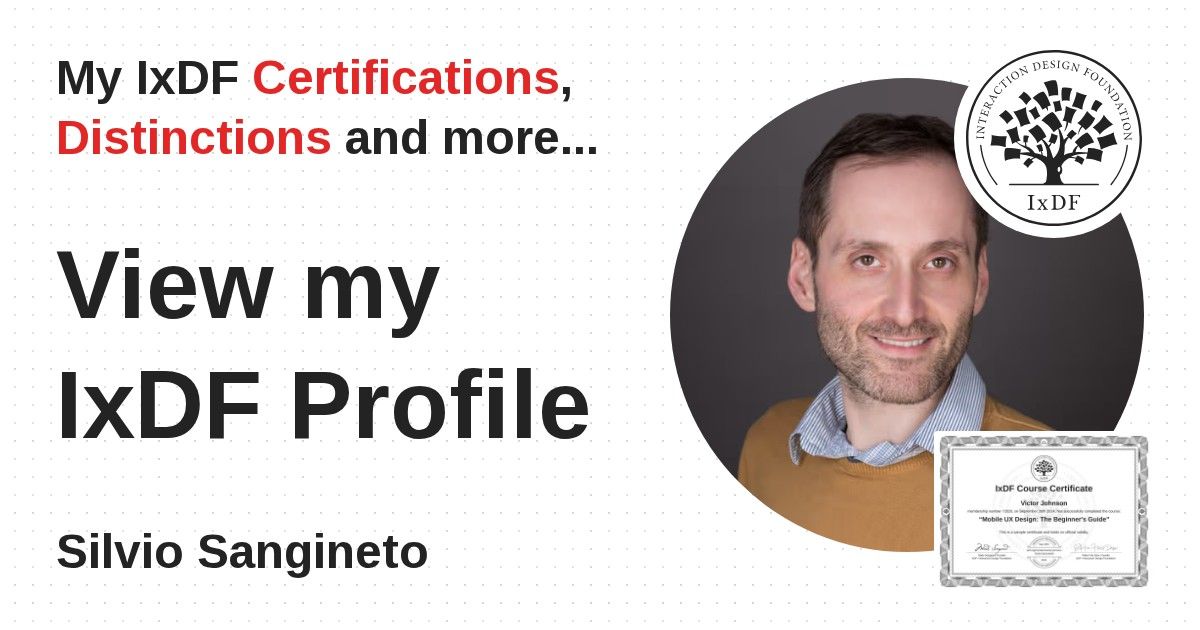 Distinctions are conferred upon Silvio Sangineto in formal recognition of their notable achievements and contributions, as stipulated by the IxDF Educational Codex.