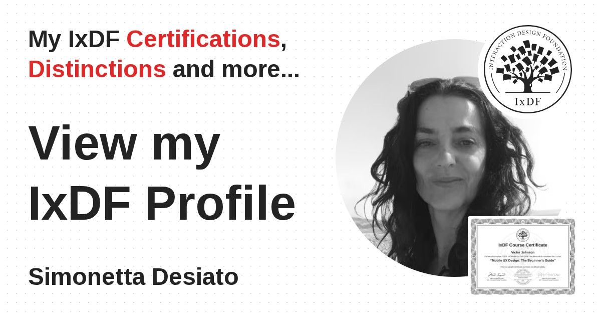 Distinctions are conferred upon Simonetta Desiato in formal recognition of their notable achievements and contributions, as stipulated by the IxDF Educational Codex.