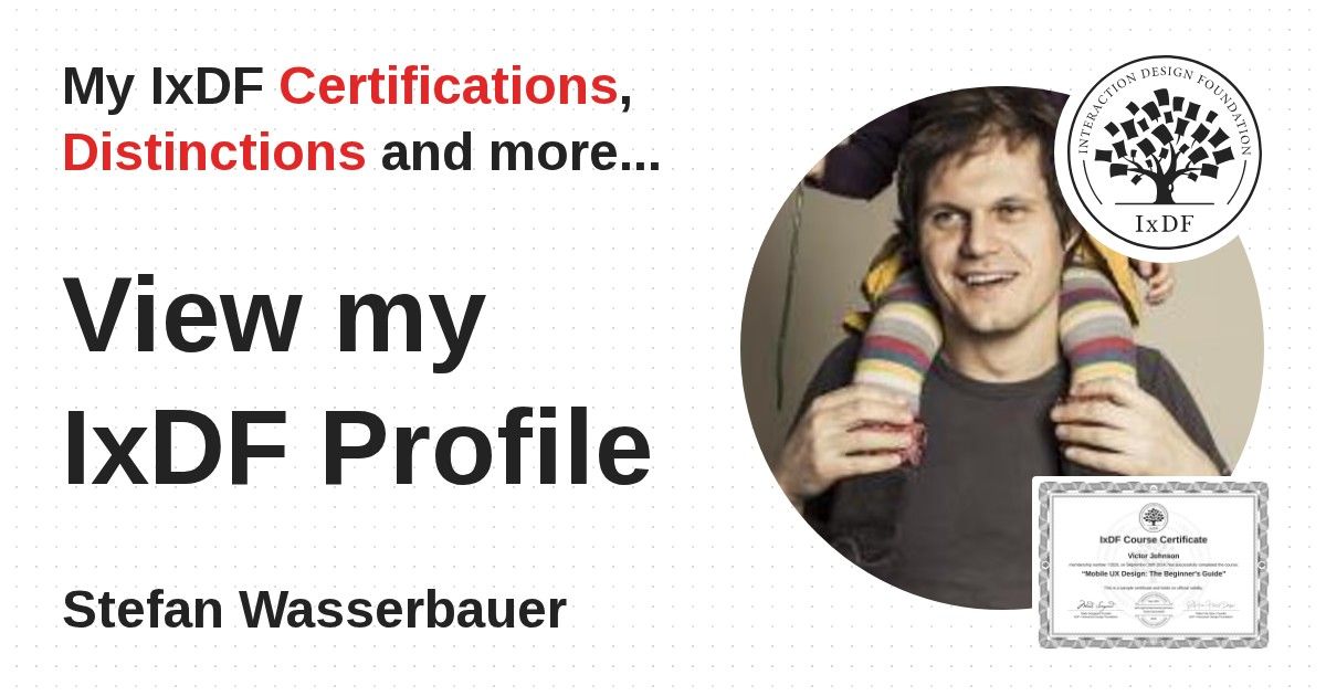 IxDF Course Certificates are awarded to Stefan Wasserbauer in formal recognition of their coursework surpassing the rigorous benchmarks of exceptional performance established by the IxDF Educational Codex.