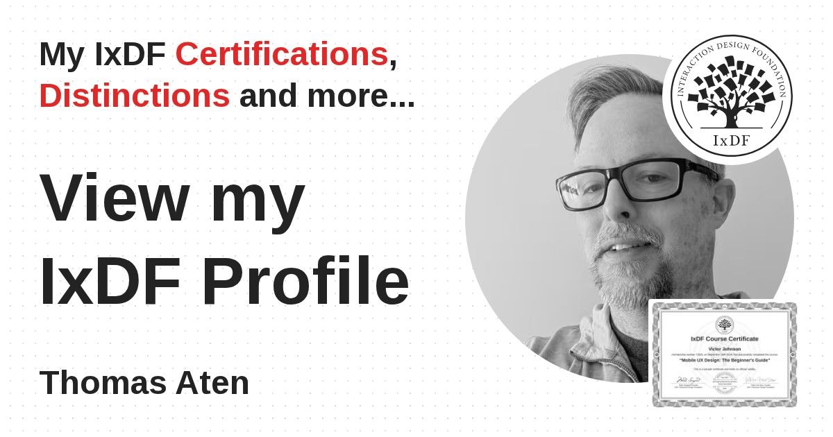 IxDF Course Certificates are awarded to Thomas Aten in formal recognition of their coursework surpassing the rigorous benchmarks of exceptional performance established by the IxDF Educational Codex.