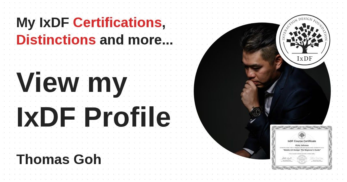 Distinctions are conferred upon Thomas Goh in formal recognition of their notable achievements and contributions, as stipulated by the IxDF Educational Codex.