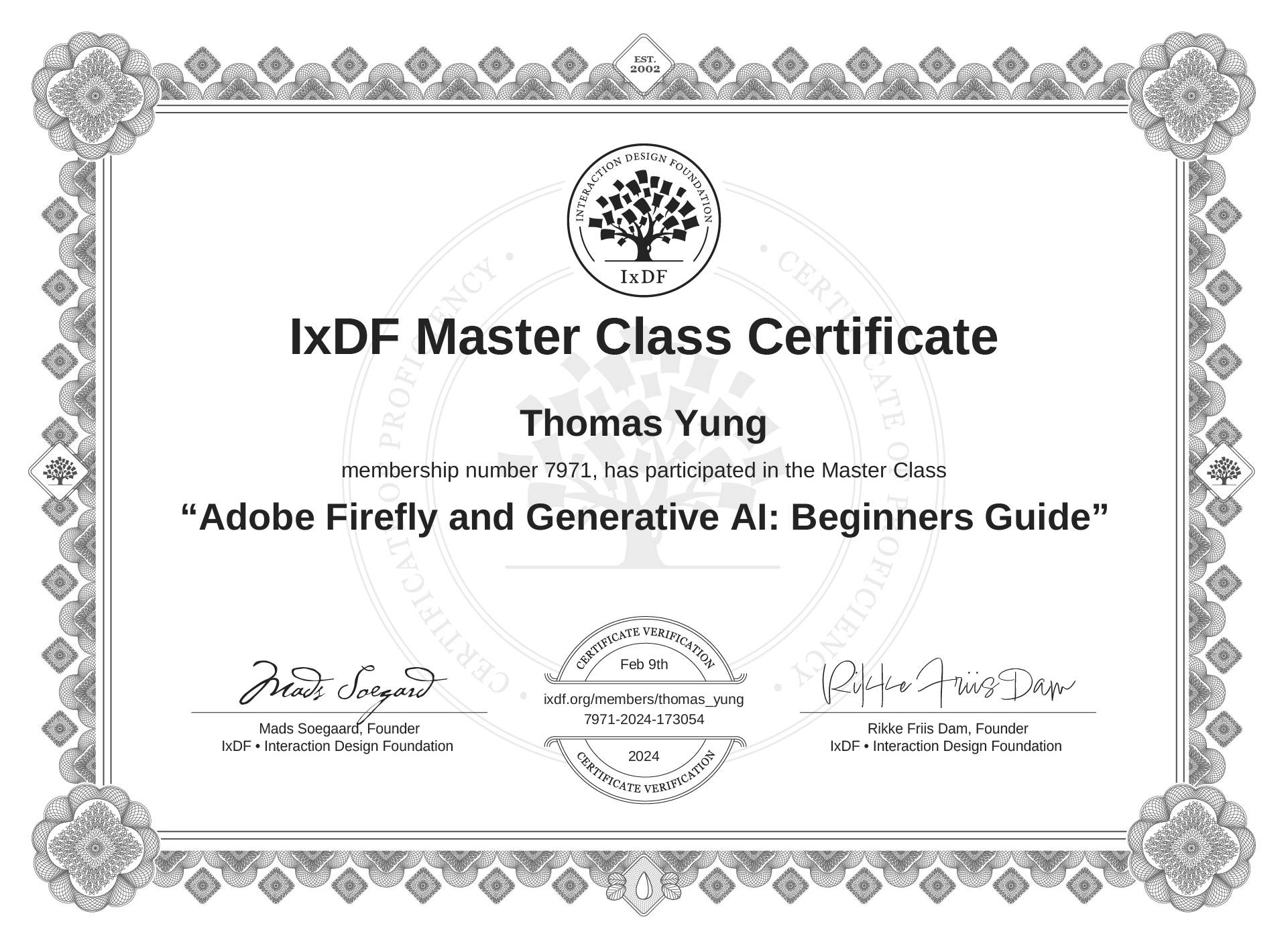IxDF Master Class Certificates are awarded to Thomas Yung in formal recognition of their attendance and ongoing commitment to learning from industry leaders.