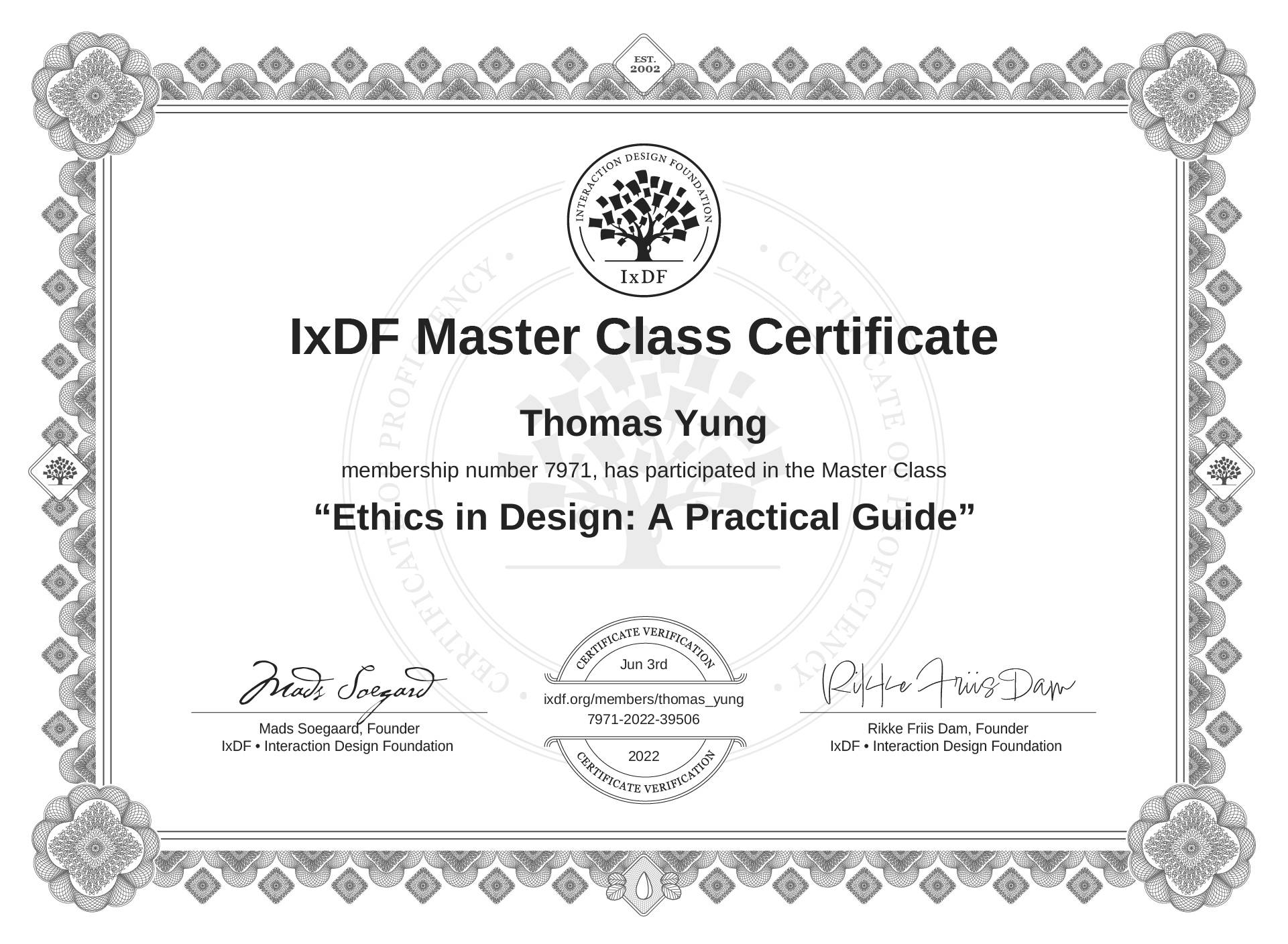 Thomas Yung's Masterclass Certificate: Ethics in Design: A Practical Guide