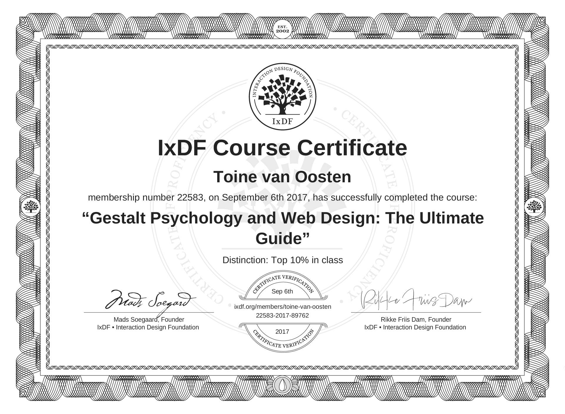 Toine van Oosten's Course Certificate: Gestalt Psychology and Web Design: The Ultimate Guide