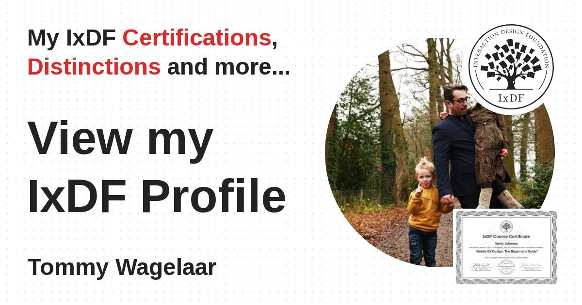 IxDF Course Certificates are awarded to Tommy Wagelaar in formal recognition of their coursework surpassing the rigorous benchmarks of exceptional performance established by the IxDF Educational Codex.